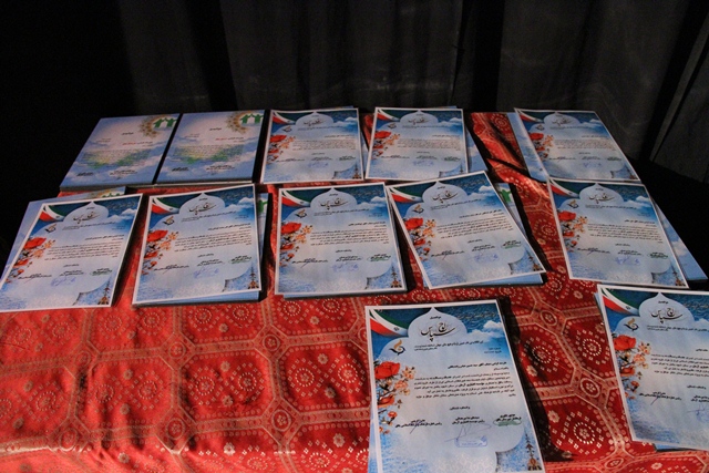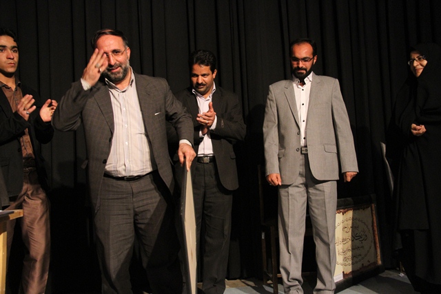 یک شنبه شب 11 اسفند ماه و در سالن همایش های اداره فرهنگ و ارشاد اسلامی بافق و با حضور فرماندار،سرپرست اداره فرهنگ و ارشاد اسلامی بافق،مدیریت آموزش و پرورش بافق و جمعی از پیشکسوتان هنرهای نمایش بافق و با همکاری موسسه مالی آرمان از فعالین این عرصه تجلیل بعمل آمد.
