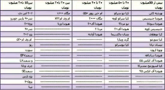 جدول خودروهای پرمصرف در ایران+جدول