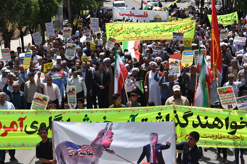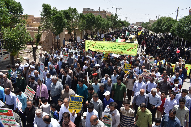 مردم روزهدار بهاباد با حضور پرشور خود و در صفوف به هم فشرده انزجارشان را از رژیم صهیونیستی اسرائیل فریاد زدند. قشرهای مختلف مردم با وجود گرمای هوا درحالی كه تصاویر امام خمینی(ره)، رهبر معظم انقلاب اسلامی، قدس شریف و دست نوشته هایی با مضامین حمایت از فلسطین را در دست داشتند با سردادن شعارهایی خواهان پایان اشغالگری در سرزمین فلسطین شدند. راهپیمایان قدس در بهاباد شعارهای الله اكبر خامنه ای رهبر، مرگ بر ضد ولایت فقیه، مرگ بر آمریكا، مرگ بر اسرائیل، یا ایها المسلمون اتحدوا اتحدوا، خامنه ای رهبر مسلمین است، وارث و افتخار مومنین است و ما پیروان حیدریم، فداییان رهبریم را سردادند و نامشروع بودن رژیم جعلی اسرائیل را بار دیگر محكوم كردندبرپایی نمایشگاه های عكس و كاریكاتور و ایستگاه نقاشی در مسیر راهپیمایی، برگزاری مسابقات فرهنگی هنری، چاپ و توزیع اقلام فرهنگی و برگزاری مسابقات فرهنگی ورزشی با محوریت مقاومت مردم فلسطین و قدس شریف از جمله برنامه های جانبی در مسیر راهپیمایی روز قدس در بهابد بود. در پایان راهپیمایی وحدت بخش روز قدس قطعنامه راهپیمائی قرائت شد كه شركت كنندگان با فریاد الله اكبر مهر تائید بر آن گذاشتند. محكومیت انتقال سفارت آمریكا به قدس، لزوم تقویت وحدت كشورهای اسلامی در قبال كشتار وحشیانه اسرائیل در نوار غزه، تاكید بر پایان محاصره فلسطینیان و محكومیت سكوت مجامع بین المللی و برخی كشورهای منطقه در برابر جنایات اسرائیل از بندهای این قطعنامه بود.