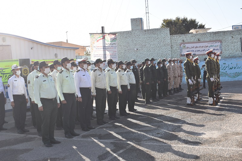آئین صبحگاه مشترک نیروهای نظامی و انتظامی بهاباد به مناسبت گرامیداشت هفته ناجا،با حضورفرماندار ، امام جمعه موقت واعضای شورای تامین با رعایت پروتکل های بهداشتی در محل ستاد فرماندهی انتظامی شهرستان بهاباد درمحل ستاد فرماندهی انتظامی بهاباد برگزارشد .