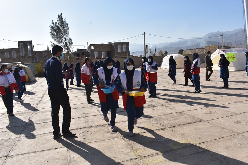 آيين نمادين اين مانور با حضور مسئولان آموزش و پرورش، جمعيت هلال احمر، آتش نشاني و نيروهاي نظامی وانتظامي در آموزشگاه شهید زینلی بهاباد برگزار شد و دانش آموزان با به صدا در آمدن آژير زلزله فرضي ، با نحوه پناه گيري، خروج بموقع و درست به هنگام زلزله آشنا شدند.