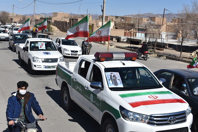 شرکتکنندگان در راهپیمایی ۲۲ بهمن شهرستان بهاباد، خودروهای خود را به شعارهای انقلابی، تصاویر حضرت امام خمینی (ره)، رهبر معظم انقلاب و تصویر شهیدان انقلاب اسلامی وپرچم جمهوری اسلامی ایران مزین کرده بودند.