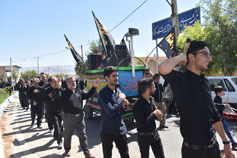 هیئتهای مختلف عزاداری از محلات مختلف شهر بهاباد به صورت دسته جات سینه زنی وزنجیرزنی حرکت و در رثای سید و سالار شهیدان دشت کربلا به سوگواری وعزاداری پرداختند.