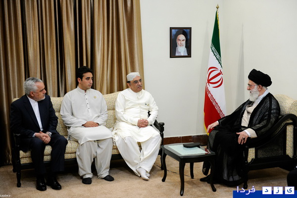 یزدفردا:تصاویر دیدار آصف علی زرداری، رئیس جمهور پاکستان و فرزندش با مقام معظم رهبری نشان می دهد آنها با لباس عبادت و زیارت پاکستانی ها در این دیدار حاضر شده اند.