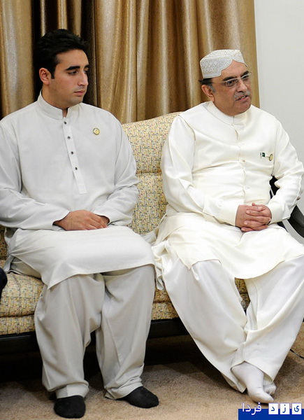 آصف زرداری و فرزندش با پای برهنه در این دیدار دیده می شوند.