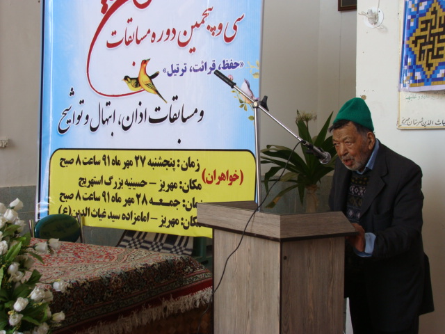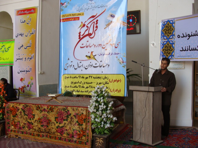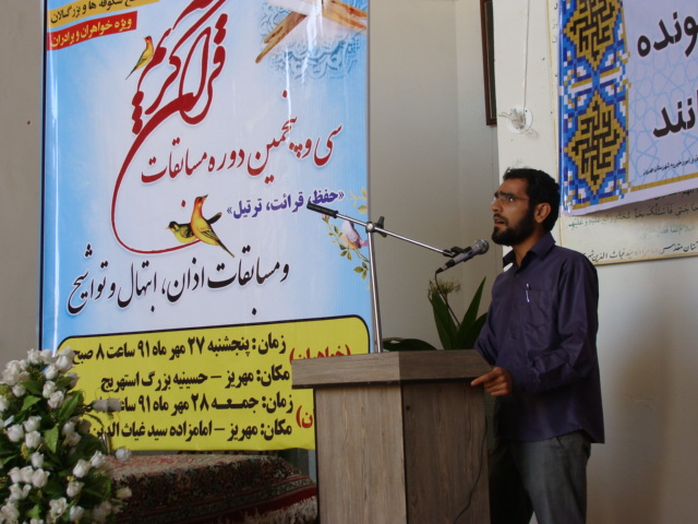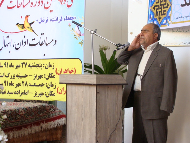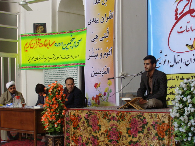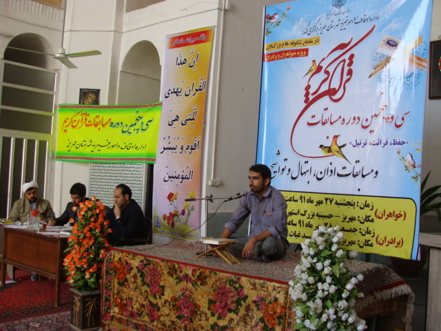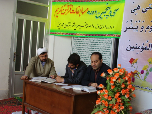 سی و پنجمین دوره مسابقات حفظ ، قرائت و ترتیل قرآن کریم، اذان ، همخوانی، مدیحه سرایی و ابتهال اوقاف و امور خیریه شهرستان مهریز برگزار شد.