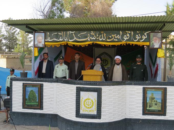 ابرکوه خبرنگار یزد فردا مهدی کارگر " مراسم صبحگاه مشترک نیروهای نظامی و انتظامی  شهرستان ابرکوه باحضور امامان جمعه ابرکوه ، مهردشت ،جمعی از خانواده شهدای نیروی انتظامی ، فرماندار ابرکوه ، فرماندهان و پرسنل نیروهای نظامی و انتظامی و جمعی از مسئولان ادارات ونهادها برگزار شد.