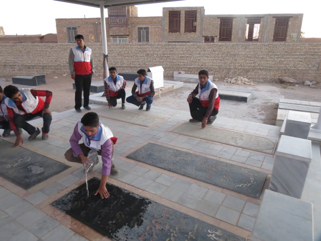 در نخستین روز دهه فجر و با حضور جمعی از جوانان جمعیت هلال احمر شهرستان خاتم، گلزار شهدای این شهرستان به مناسبت دهه فجر غبار روبی و عطرافشانی شد.