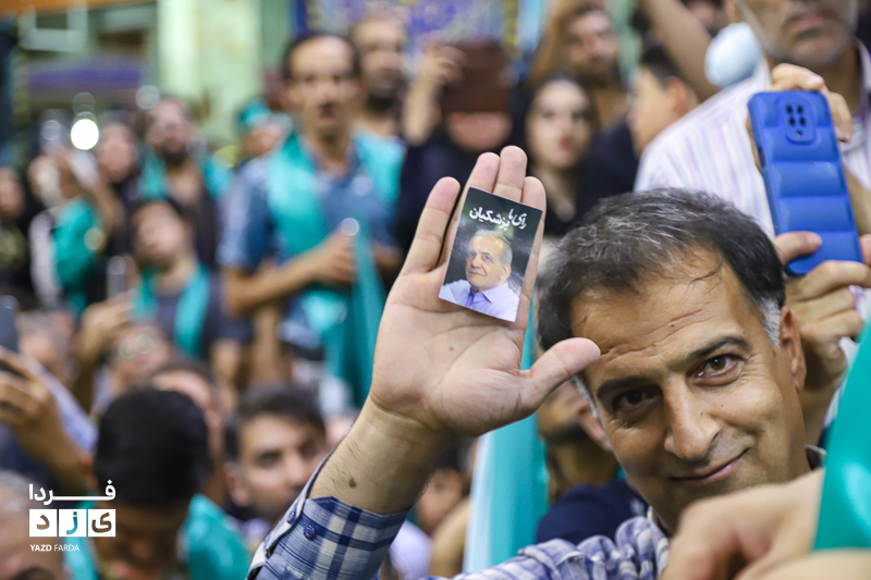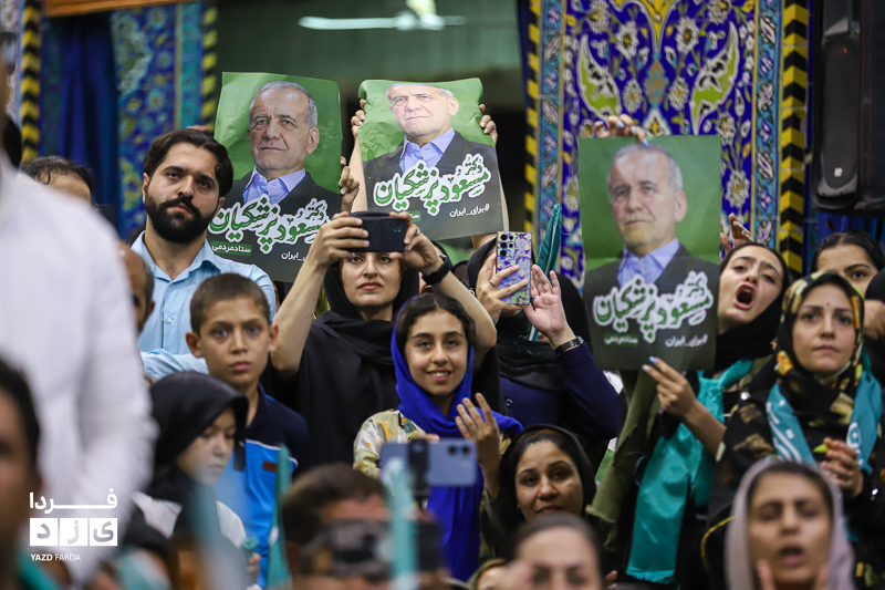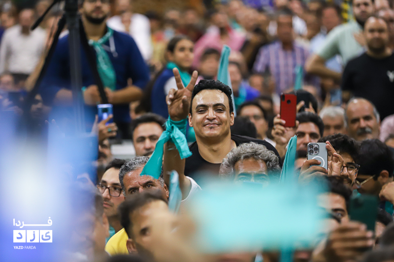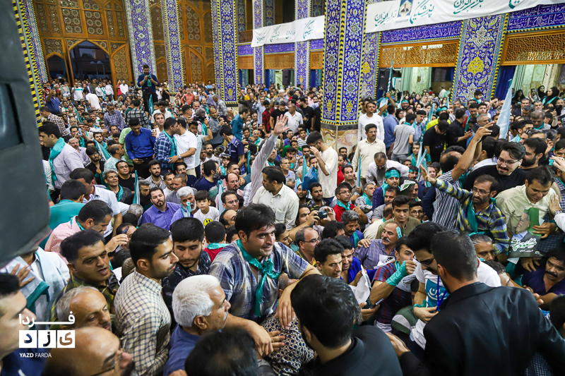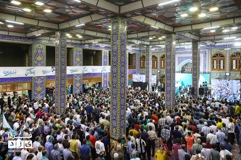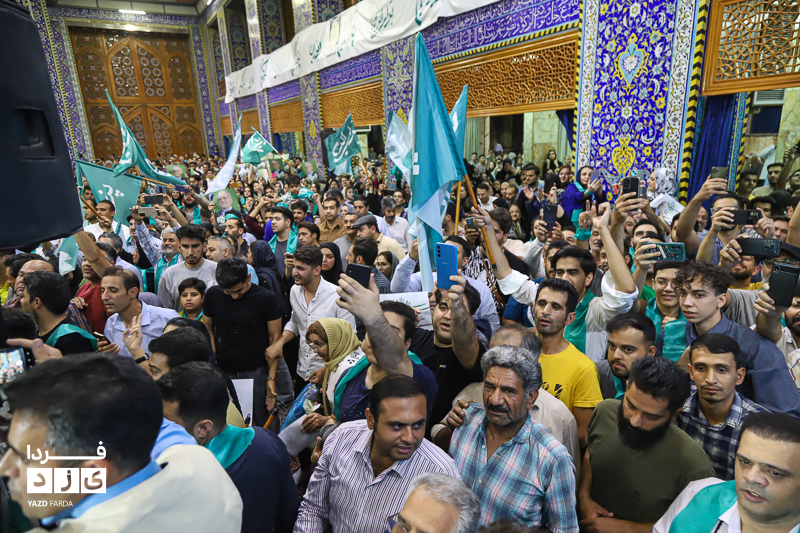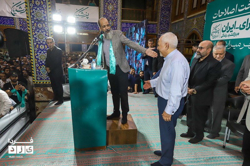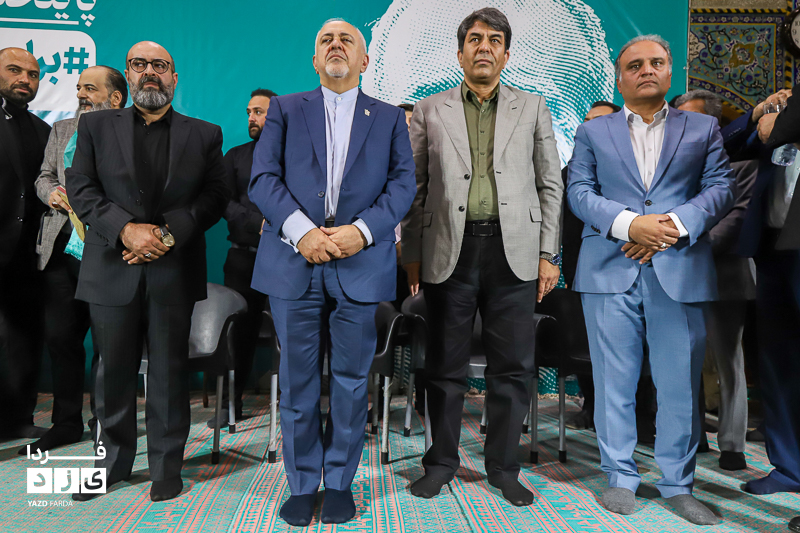 محمد جواد ظریف وزیر امور خارجه سابق ایران، عصر امروز چهارشنبه ۱۳ تیرماه ۱۴۰۳ در جمع هواداران دکتر پزشکیان، کاندیدای چهاردهمین دوره انتخابات ریاست جمهوری در مسجد روضه محمدیه (حظیره) یزد به سخنرانی پرداخت.