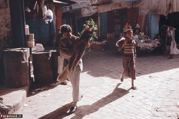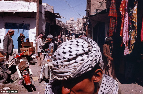 مقطع مهم بین سال های 1990 تا 1994 زمانی است که یمن به ریاست علی عبدالله صالح پس از سالها جنگ داخلی و نیز مبارزه با استعمار انگلیس به عنوان یک کشور واحد لحظات مهمی از تاریخ خود را سپری میکند. "نیکوس اکولومپوس" عکاس یونانی درست در همین زمان یعنی در سال 1992 چند هفتهای را به یمن سفر میکند و از این کشور تازه شکل گرفته عکاسی میکند. او در سفر خود به صنعا بیشتر به زندگی مردم کوچه و بازار توجه دارد و از این جهت عکسهایش قابل توجهی از این کشور در 23 سال پیش یمن به دست میدهد. یکی از سوژه های عکاس در مجموعه عکس هایش عکاسی از کشت و خرید و فروش گیاه مخدر "قات" در یمن است. توجه به پوشش مردم، و معماری شهرها و نمای ساختمانها دیگر سوژه های مورد توجه این عکاس بوده است.