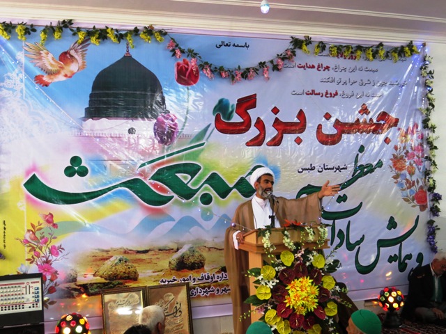 اين جشن كه با مشاركت نهاد امامت جمعه، انجمن سادات، شهرداري و شوراي اسلامي شهر و اداره اوقاف و امورخيريه و نیز آستان مبارک حضرت حسین بن موسی الکاظم(ع) طبس برگزار شد، حجت الاسلام دکتر فتحعلی زاده- محقق و استاد حوزه و دانشگاه به سخنراني پرداخت.
