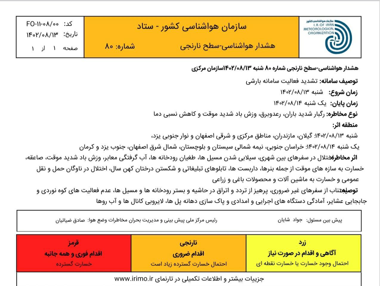 اطلاعیه سطح زرد اداره هواشناسی استان