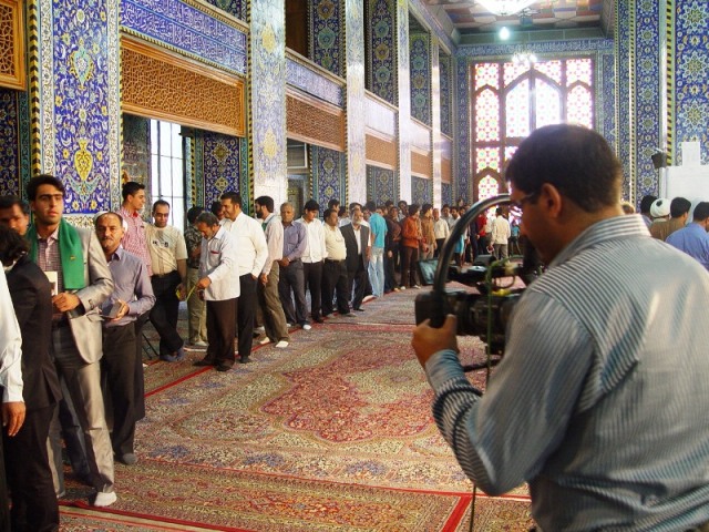 کارکنان صداوسیمای مرکز یزد با تولید برنامه های ویژه انتخابات وبا حضور در محل های اخذ آرای مردم در انتخابات ریاست جمهوری وشورای شهر وروستا این حماسه عظیم حضور را به تصویر کشاندند تا جهانیان بدانند که ما با ولایتیم وپشتیبان ولایت فقیه هستیم