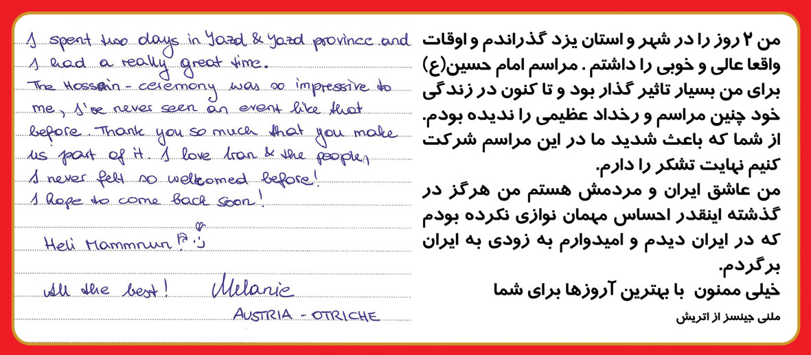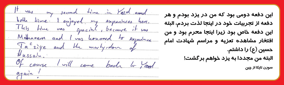 خاطرات گردشگران خارجی از مراسم عاشوراي 1392 يزد