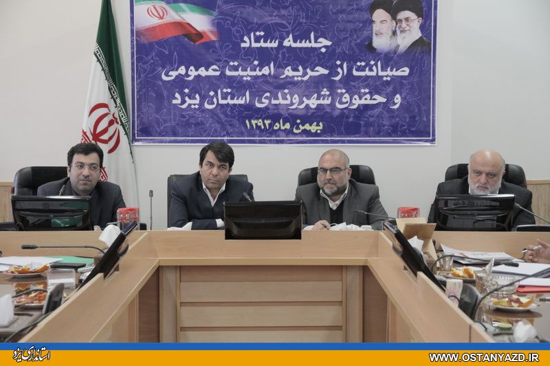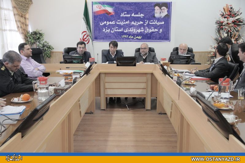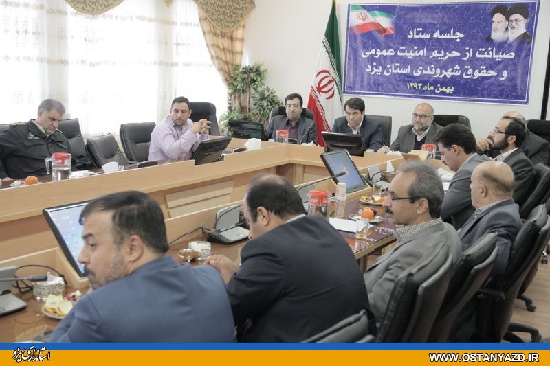 به گزارش اداره کل روابط عمومی استانداری یزد جلسه ستاد صیانت از حریم امنیت عمومی و حقوق شهروندی استان یزد با حضور جانشین و بازرس ستاد صیانت وزارت کشور ، معاون سیاسی ، امنیتی و اجتماعی استاندار یزد ، فرمانداران شهرستانها و مدیران کل استانی عضو این ستاد صبح چهارشنبه 15 بهمن ما در سالن حمیدیا استانداری برگزار شد.
